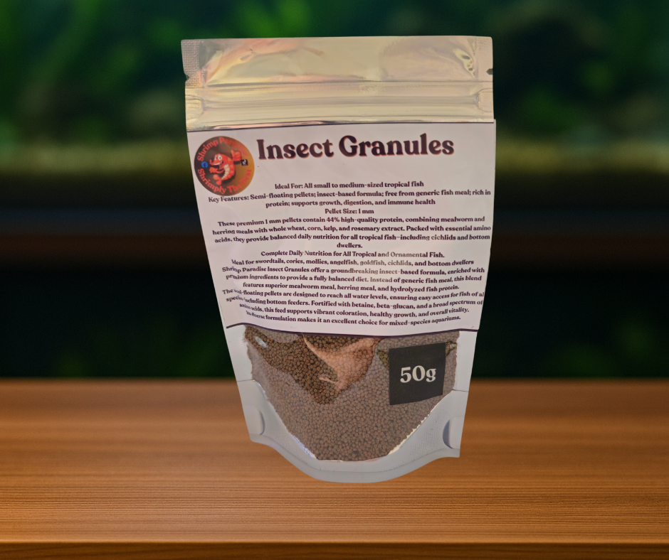 Shrimp Paradise Insect Granules offer a groundbreaking insect-based formula, enriched with premium ingredients to provide a fully balanced diet. Instead of generic fish meal, this blend features superior mealworm meal, herring meal, and hydrolyzed fish protein.
