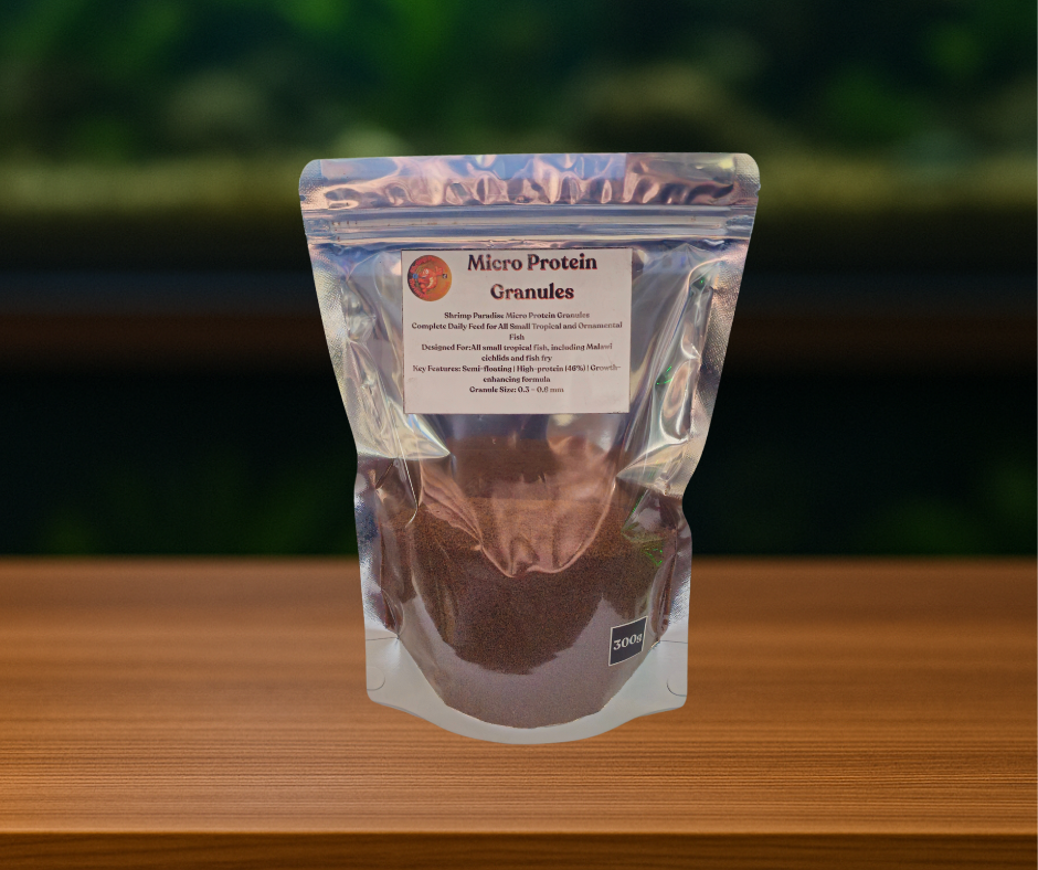 Shrimp Paradise Micro Protein Granules are a complete, nutrient-dense daily feed for small ornamental fish and fry. This finely sized, semi-floating feed is suitable for fish across all water zones—including bottom dwellers like loaches, cories, and catfish.