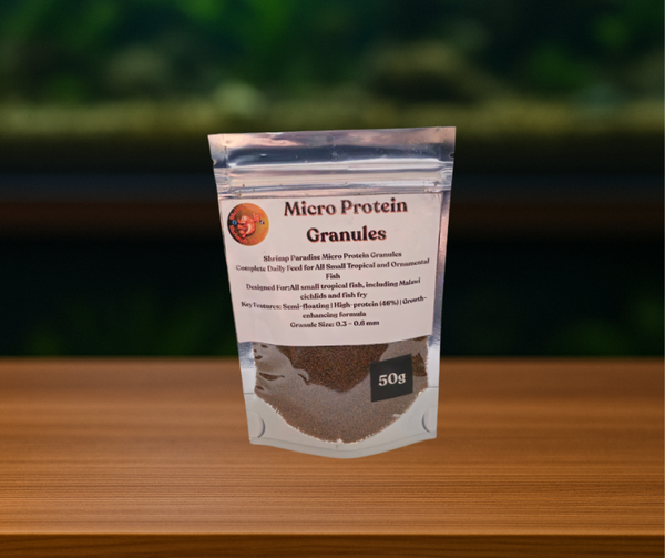 Shrimp Paradise Micro Protein Granules are a complete, nutrient-dense daily feed for small ornamental fish and fry. This finely sized, semi-floating feed is suitable for fish across all water zones—including bottom dwellers like loaches, cories, and catfish.