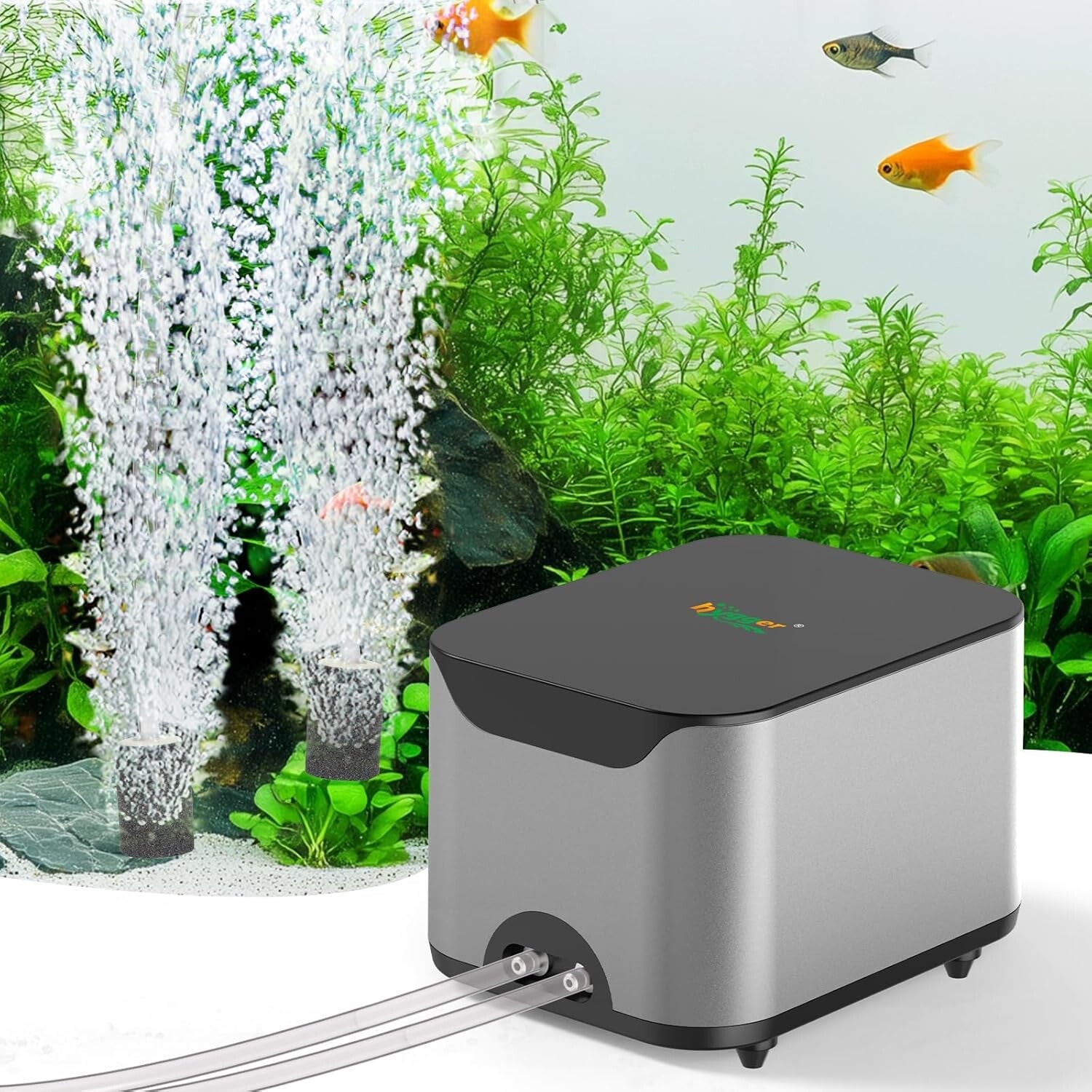 hygger Air Pump Aquarium, Fish Tank Air Pump Extra Quiet, <30dB, 2 Outlet Adjustable Airflow Oxygen Pump Aquarium with All Accessories, Powerful Air Aerator Pump for fish Tank