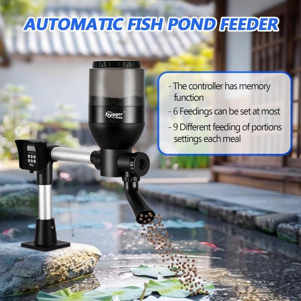 - 👉【Large Capacity Food】The food container of the pond feeder is large enough to hold 5.5 liters or 2.3kg of fish food. After the feeder is filled with food, it can feed your koi for several days, depending on the number and size of fish you have. hygger automatic outdoor pond fish food feeder is perfect for daily use whether you are at home or away. Even if you are on a long vacation, you can feed your fish on time, without worrying about your fish!