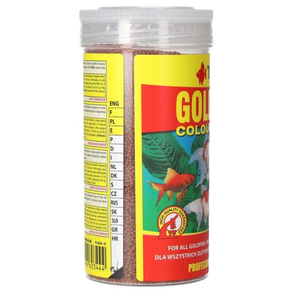 GOLDFISH COLOUR PELLET is a colour-enhancing food in the form of tiny, floating granules, intended for everyday feeding of all species of goldfish and young koi, kept both in tanks and ponds.