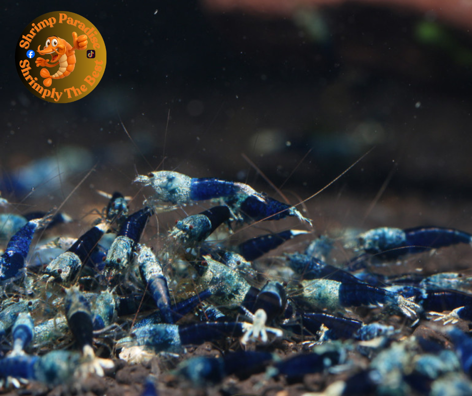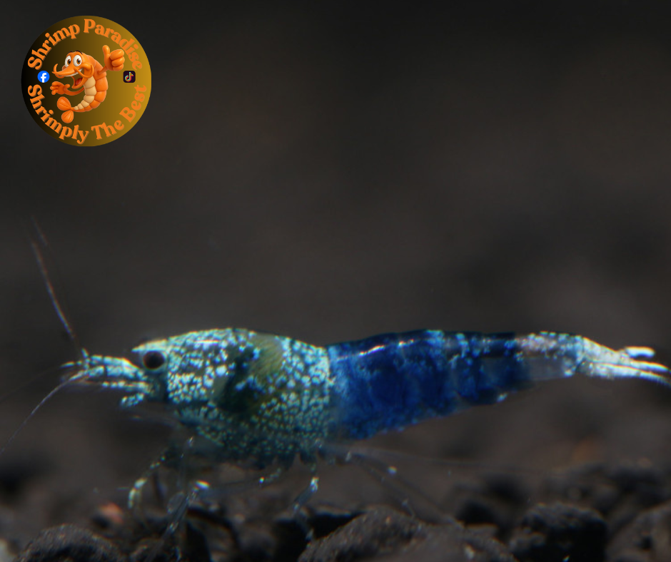 Distinctive look of blue colour taitibee shrimp. Originated from blue steel, was selected breed for deep navy blue body, to beige looking head's colour.