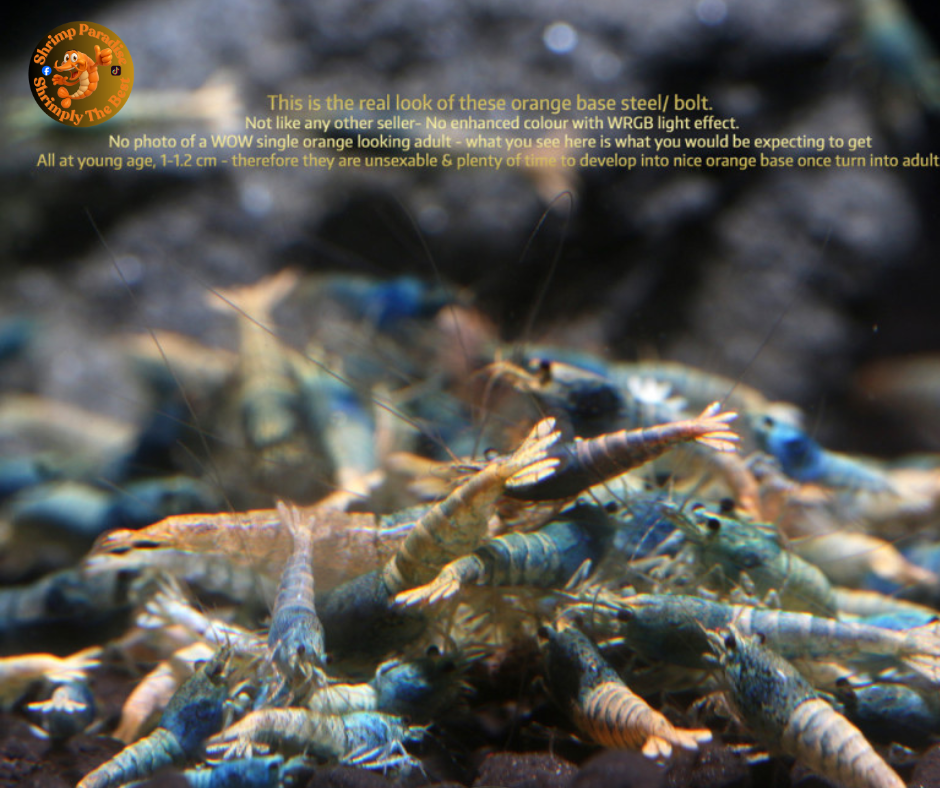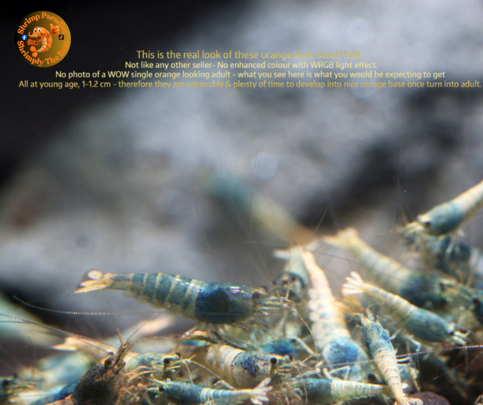 Distinctive look of blue colour taitibee shrimp. Originated from blue steel, these shrimp carries the orange bodies or orange base gene.