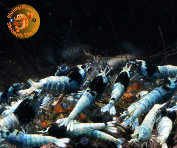 The intensity of blue shadow depending on your water's parameters. Therefore sometimes the shrimp can show light blue, sometimes dark blue.