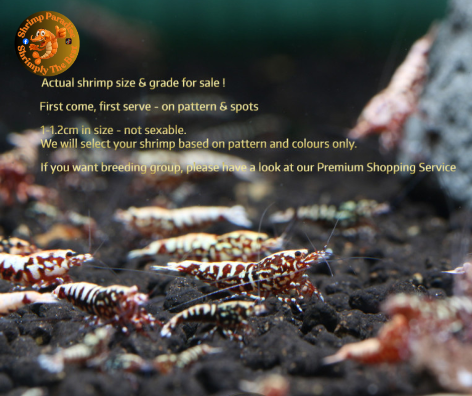 Red body with many spots on the body - shrimp can show metallic pinkish red metallic marking on the backline.