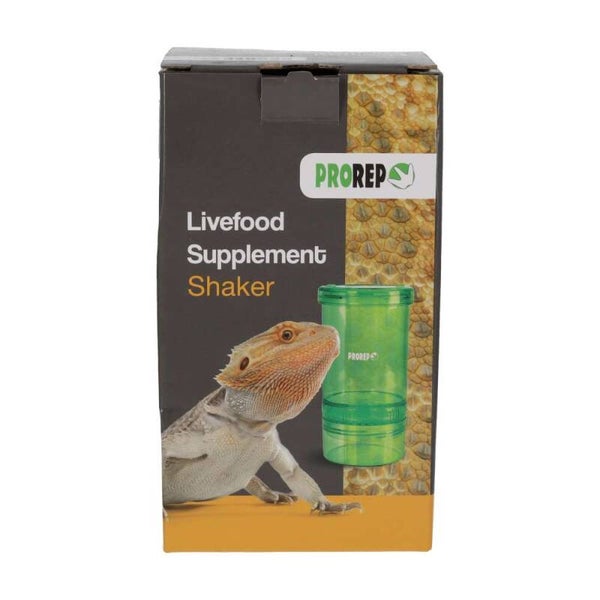 ProRep Livefood Supplement Shaker is designed for easy, mess-free dusting of live feeder insects. Its transparent design allows you to monitor supplement coverage, while the adjustable lid and lockable mesh provide precise control. The shaker also includes a convenient storage compartment for excess powder.