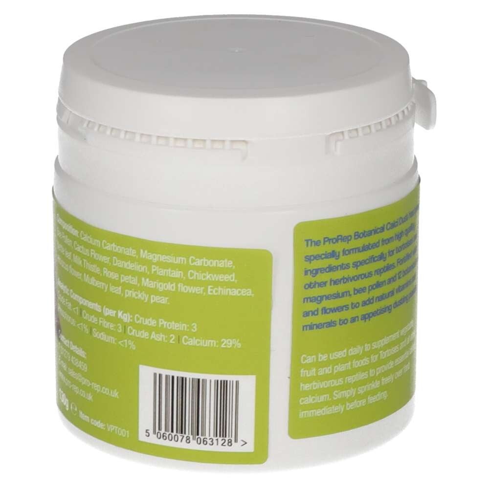 ProRep Tortoise Life Botanical Calci Dust 130g is a premium natural calcium supplement for tortoises and other herbivorous reptiles. Fortified with magnesium, bee pollen, and 12 botanical herbs and flowers, it provides essential dietary calcium while enhancing feeding response and encouraging natural foraging behaviour. This appetising dusting can be used daily on vegetables, fruits, and plant matter to support shell growth, bone development, and overall health.