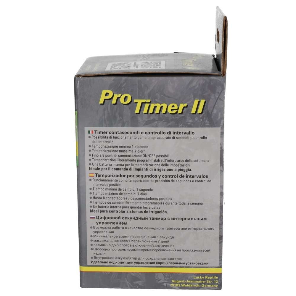 This is particularly interesting for irrigation technology. Irrigation times can thus be designed not only extremely numerous but also very varied in the course of a day, as well as in the course of a week. E.g. frequent short rain showers in the morning, a dry phase at midday and a long shower in the evening on freely selectable days; the irrigation times on other days can be defined differently, or omitted completely. The Pro Timer II covers all the requirements of a timer and also offers great opportunities to make the terrarium climate more varied and more natural.
