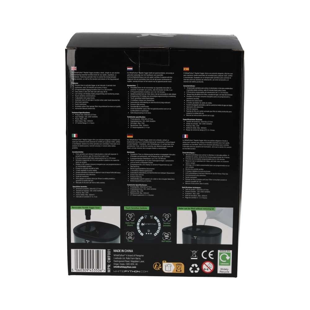 The WhitePython® Reptile Fogger provides a sleek, simple to use solution to maintaining essential humidity levels for any reptile, amphibian or invertebrate. Featuring a periodic timer to control the time between fogging, and the duration and volume of the fog produced. The WhitePython® Reptile Fogger makes it easy to ensure your reptiles environment provides exactly what’s needed for your reptile to thrive.