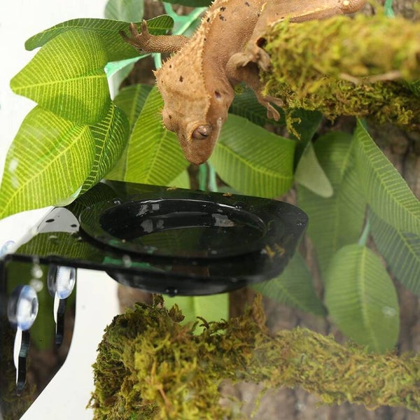 Featuring 2 suction cups for secure fixing to the inside of a glass terrarium. Comes with a single plastic cup feeding dish, ideal for Crested and other arboreal geckos.