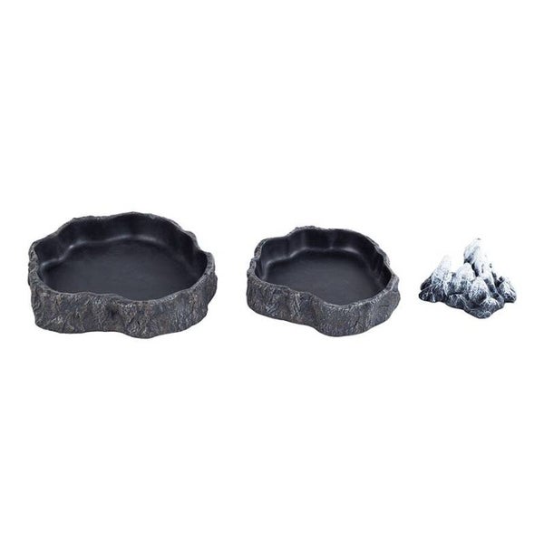 The ReptiZoo Mountain Food & Water Dish Set contains 3 parts. There are 2 separate dishes which can be used as either food or water dishes, depending on your requirements. The third part is an artificial snow-capped mountain range, which aside from looking aesthetically pleasing, adds an element of safety to your enclosure, as it allows both reptiles and insects the ability to safely climb onto it, should they be unable to climb out of the water otherwise.
