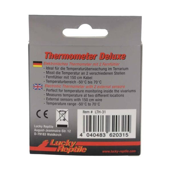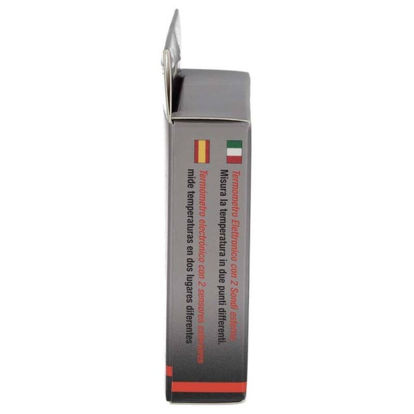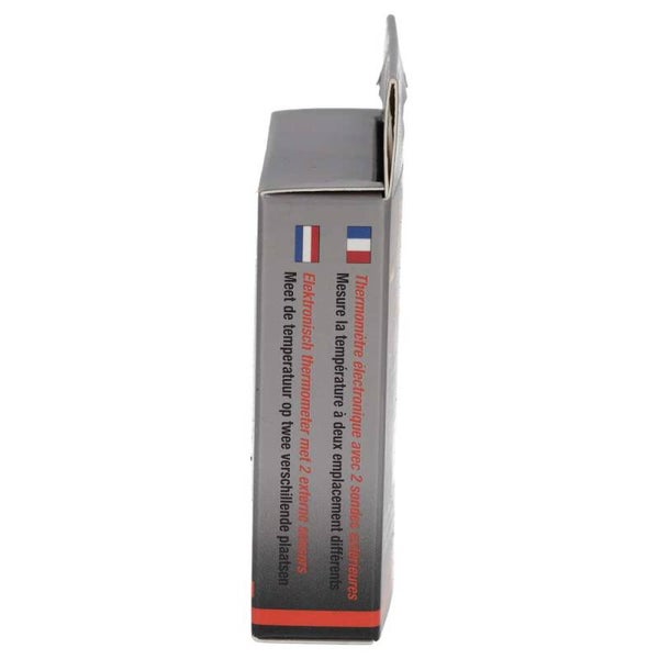 This electronic thermometer has two external sensors which allows measuring the temperature in two different spots. The sensors can also be used for measurements in water. The device has a large display for easy readouts and a clock function.