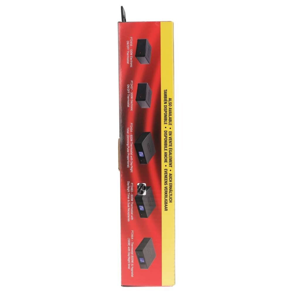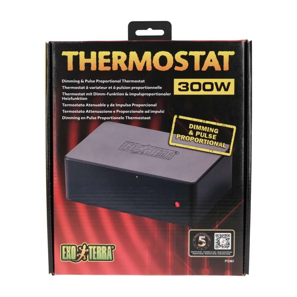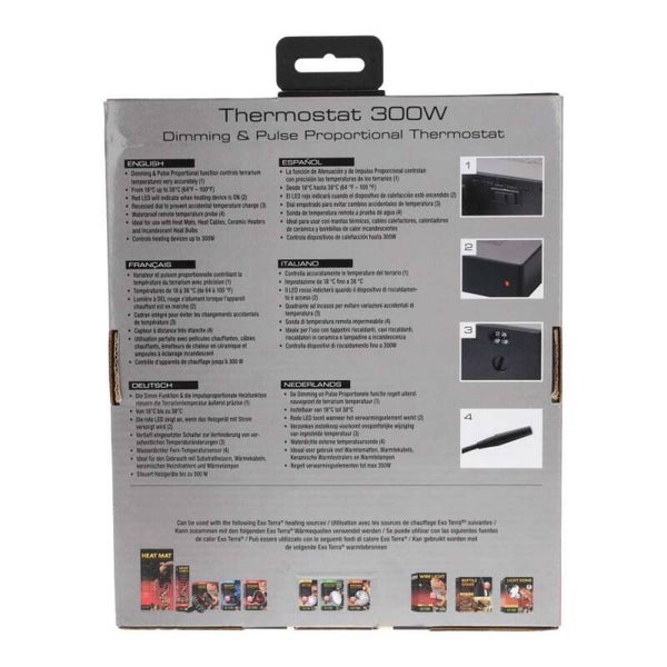 Reptiles are ectotherm, and use heat from an external source to thermoregulate their optimal body temperature. Most reptiles use direct radiant heat from the sun in combination with conductive heat from sun-heated surfaces such as branches, rocks or other heat accumulating structures. Providing such an appropriate, species related, temperature gradient in the terrarium is an important factor in successful reptile keeping. With the Exo Terra 300W Electronic ON/OFF Thermostat you can create a well-controlled heating system that allows you to maintain the required temperature conditions similar to those found in a desert or tropical environment.