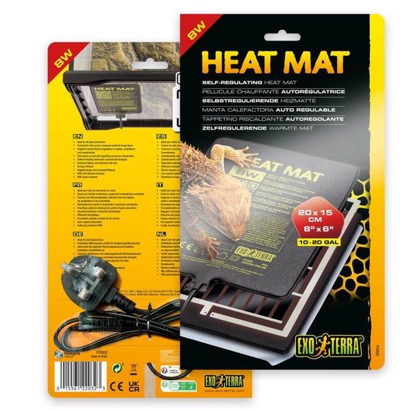 The Exo Terra Self Regulating Heat Mats are remarkably energy efficient, providing increased heat output for usual wattage levels. Their superior PTC Carbon Fiber heating technology includes enhanced safety features such as an automatic failsafe mechanism, fast warm up capabilities, and a self regulating maximum temperature for optimal performance and safety. It's important to leave ample cold spots in your terrarium, to ensure that your animals have a variety of options to regulate their body temperature effectively. This Heat Mat serves as an optimal 24h primary or secondary heat source for reptiles, amphibians, and invertebrates, and will adhere to the terrarium, forming a solid bond fo