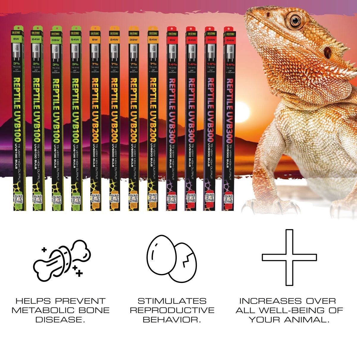 Exo Terra®’s exceptional T5 lamps are crafted in Germany to the highest quality standard, ensuring a prolonged UV output of 12+ months for lasting performance. With its intense output of UVA and UVB rays – combined with a well-balanced visible light spectrum – the Exo Terra® Reptile UVB200 T5 Very High Output Bulb is specifically designed to meet the needs of reptiles that bask occasionally or in partial sunlight in the Mesophotic Zone. The intensity of the emissions varies depending on the distance from the basking area.