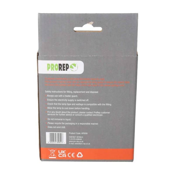 Use with a dimming thermostat and a suitable lamp guard. Allow to cool fully before handling, and never switch on again until it has returned to room temperature to prevent thermal shock or early failure.