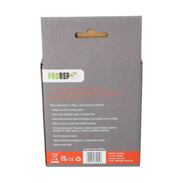The ProRep Infrared Heat Projector 50w is designed specifically for reptiles, amphibians, and invertebrates. It emits near-wave and mid-wave infrared heat, which penetrates deeply into the epidermis, dermis, and subcutaneous layers. This supports thermoregulation, activity, cellular repair, and natural behaviours. The projector produces no visible light, making it suitable for both daytime and night-time use.
