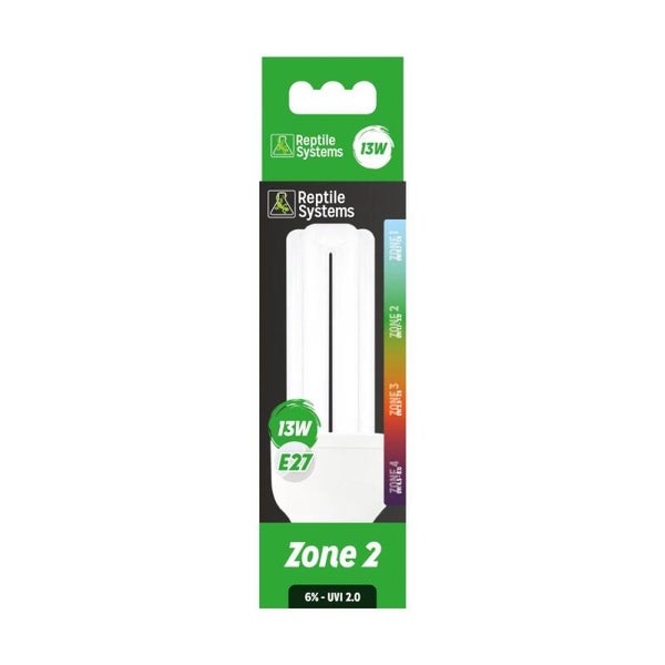 The RS Compact Lamp Zone 2 13W is designed for reptiles and amphibians that require low to moderate UVB exposure. Producing an average UVI of 2.0 at 30cm (without reflector), it supports natural Vitamin D3 production for healthy calcium metabolism while maintaining a realistic full-spectrum light output. This lamp enhances natural colours and provides a comfortable basking environment. With a standard E27 screw fitting and no need for an external ballast, it’s an easy, energy-efficient choice for small to medium enclosures.
