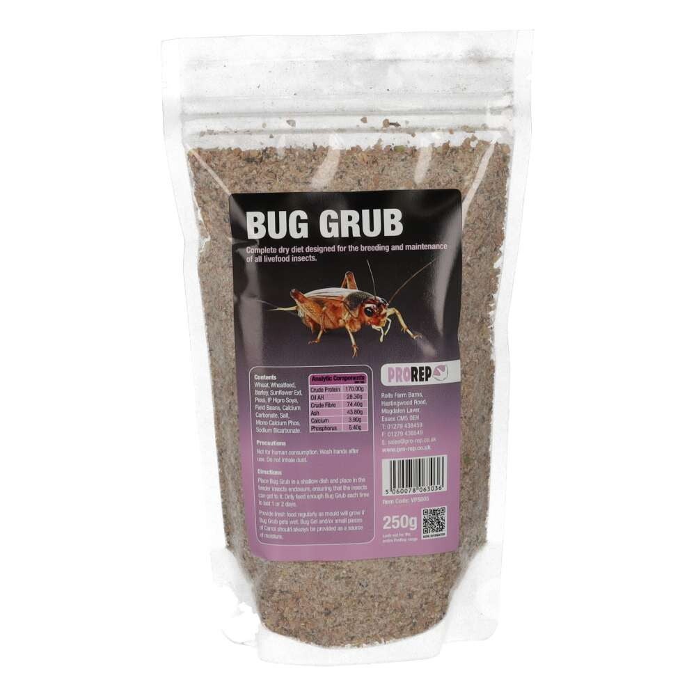 ProRep Bug Grub Refill Pack 250g is a complete dry diet formulated for feeder insects, designed to support both breeding and maintenance. Rich in calcium and protein, it provides essential nutrition to keep livefood insects healthy and nutritious for reptiles and amphibians. Made from premium ingredients for maximum palatability, this pack is ideal for topping up existing Bug Grub containers.