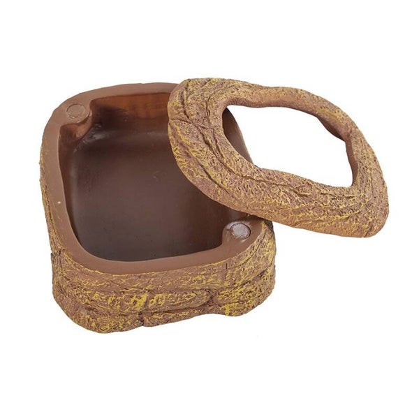 Simulates rock appearance with top cover fixed by magnets, safe and stable to avoid being tipped over by reptiles. Smooth inner wall without gaps making it easy to clean. Made of safe and non-toxic resin.