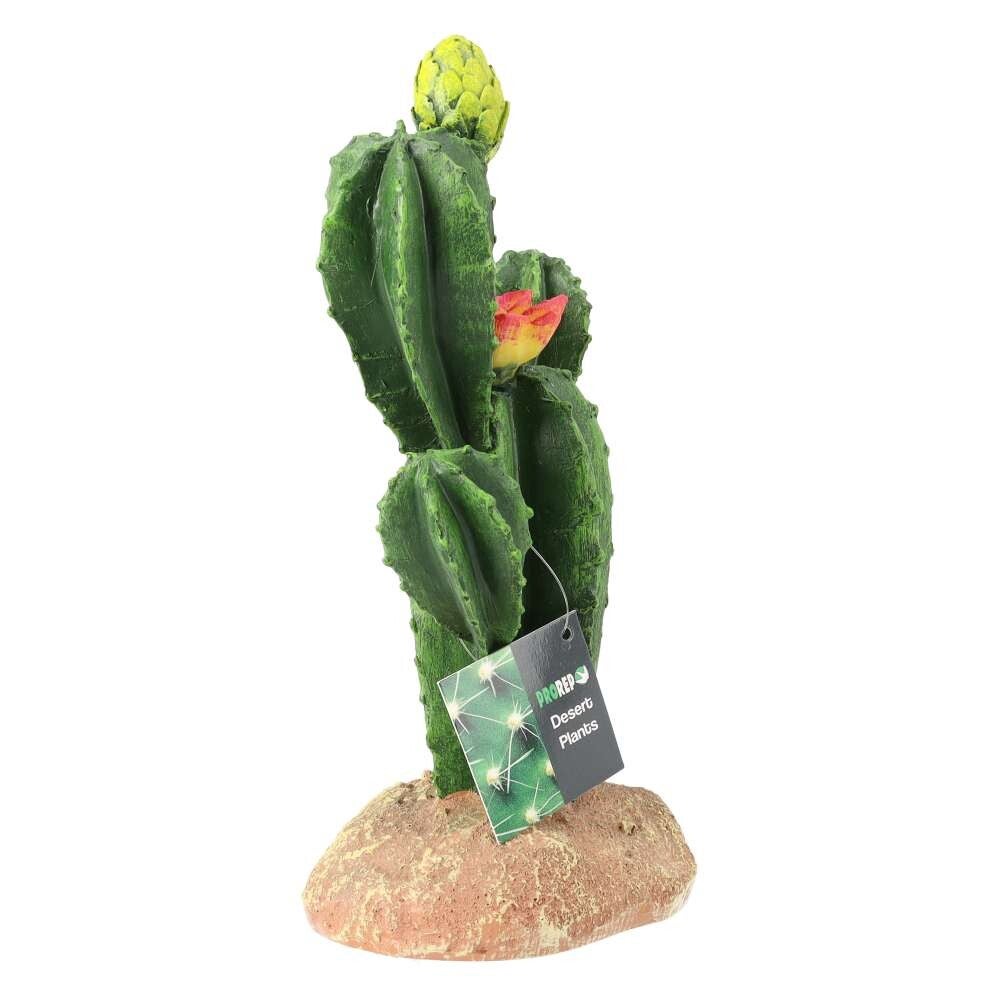 A resin cactus with flowers for naturalistic desert-themed enclosures, providing color, climbing, and exploration surfaces.